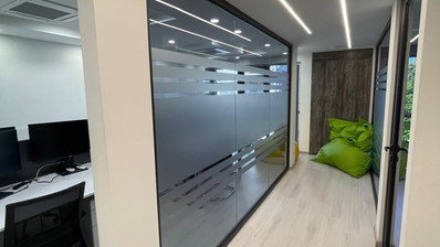 Inside, you will find a well-designed office ready for immediate use. The furniture is modern and comfortable, suitable for a professional working environment.